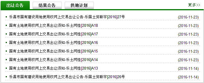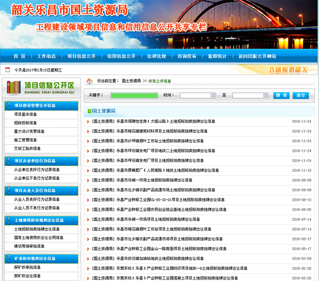 2、联合乐昌市公共资源交易中心的网上交易平台,全面实行土地使用权网上交易,同时在乐昌市工程建设领域项目信息和信用信息公开共享平台及时发布土地出让公告等信息。