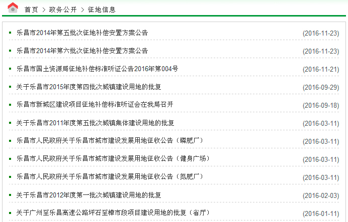 3、按照省、韶要求,进一步完善政府网站征地信息专栏,并逐步将