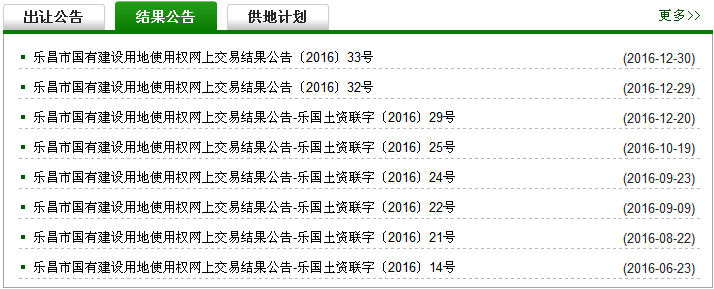 (上图为2016年度部分国有土地使用权出让结果公告)
