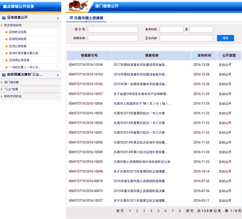 1、认真编制了标准、规范的《乐昌市国土资源局信息公开指南》和《乐昌市国土资源局信息公开目录》。按时在韶关市党风廉政信息公开平台上统一发布;