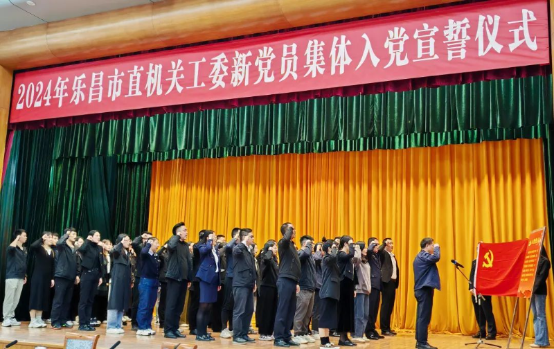 12月4日,2024年乐昌市直机关工委新党员集体入党宣誓仪式在市府礼堂二楼举行,市直机关工委新吸收的56名预备党员进行了庄严的宣誓。