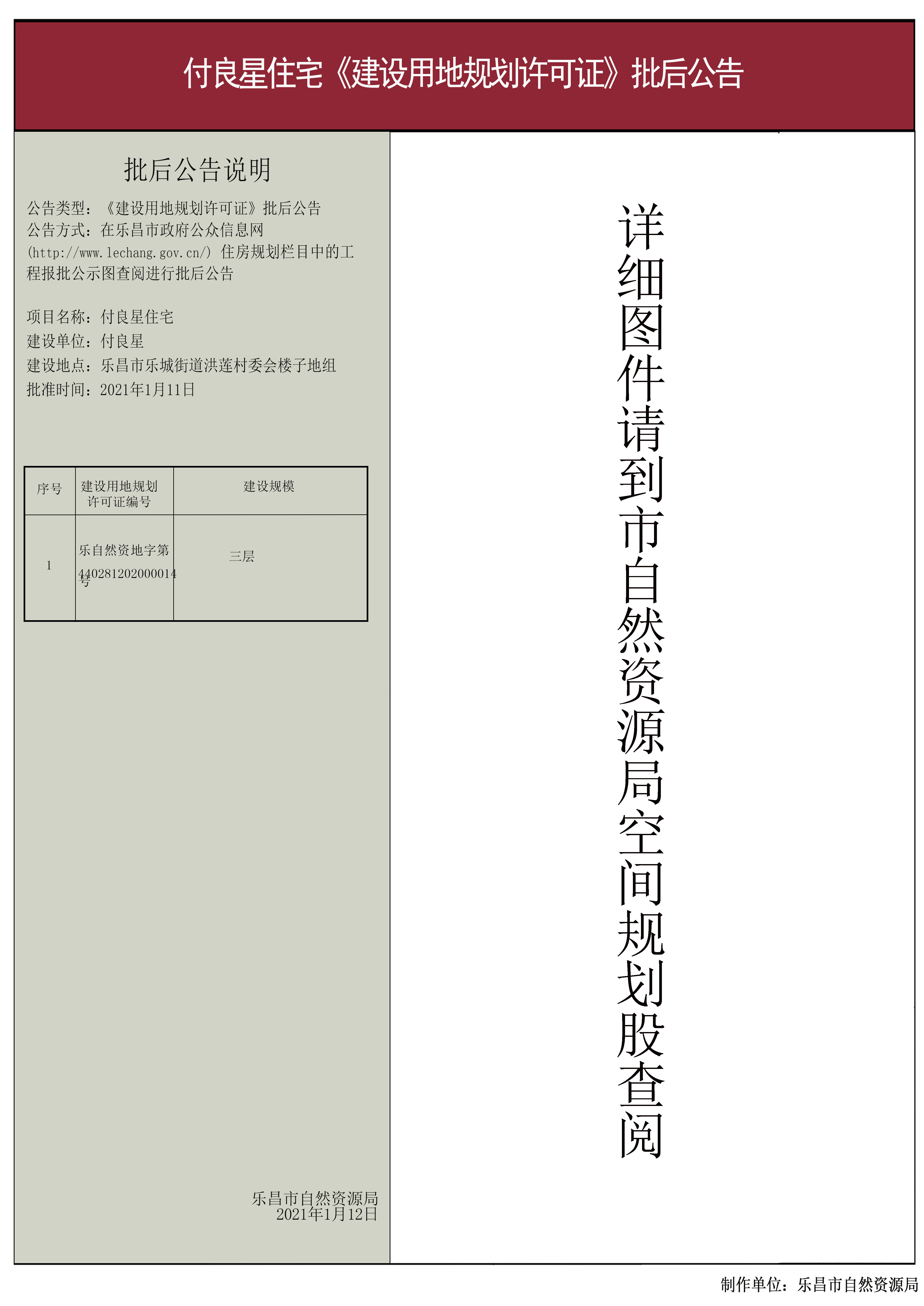 【批后公告】付良星住宅《建设用地规划许可证》