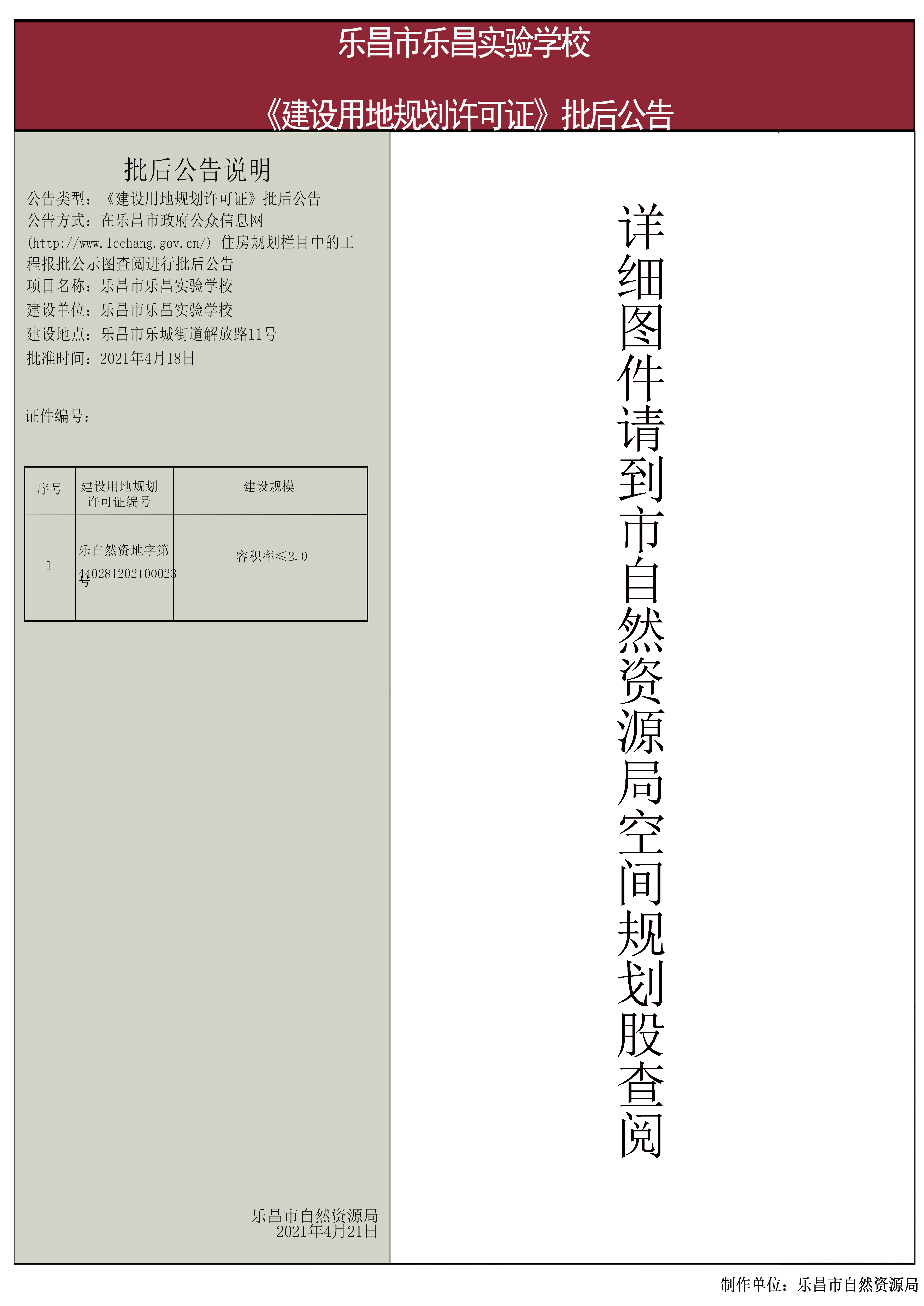 乐昌实验学校新建教学楼项目《建设用地规划许可证》批后公告.jpg