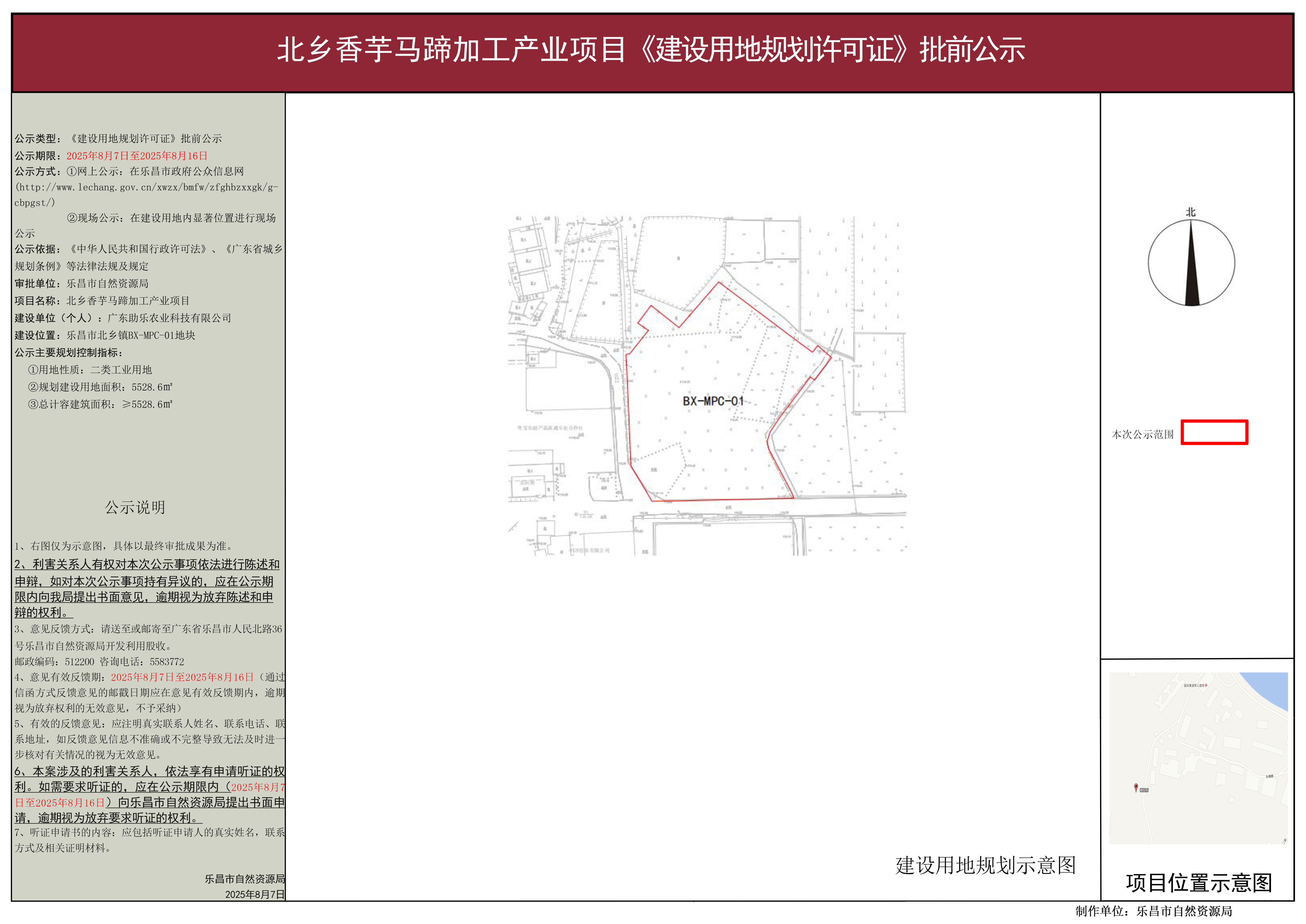 北乡香芋马蹄加工产业项目《建设用地规划许可证》批前公示.jpg