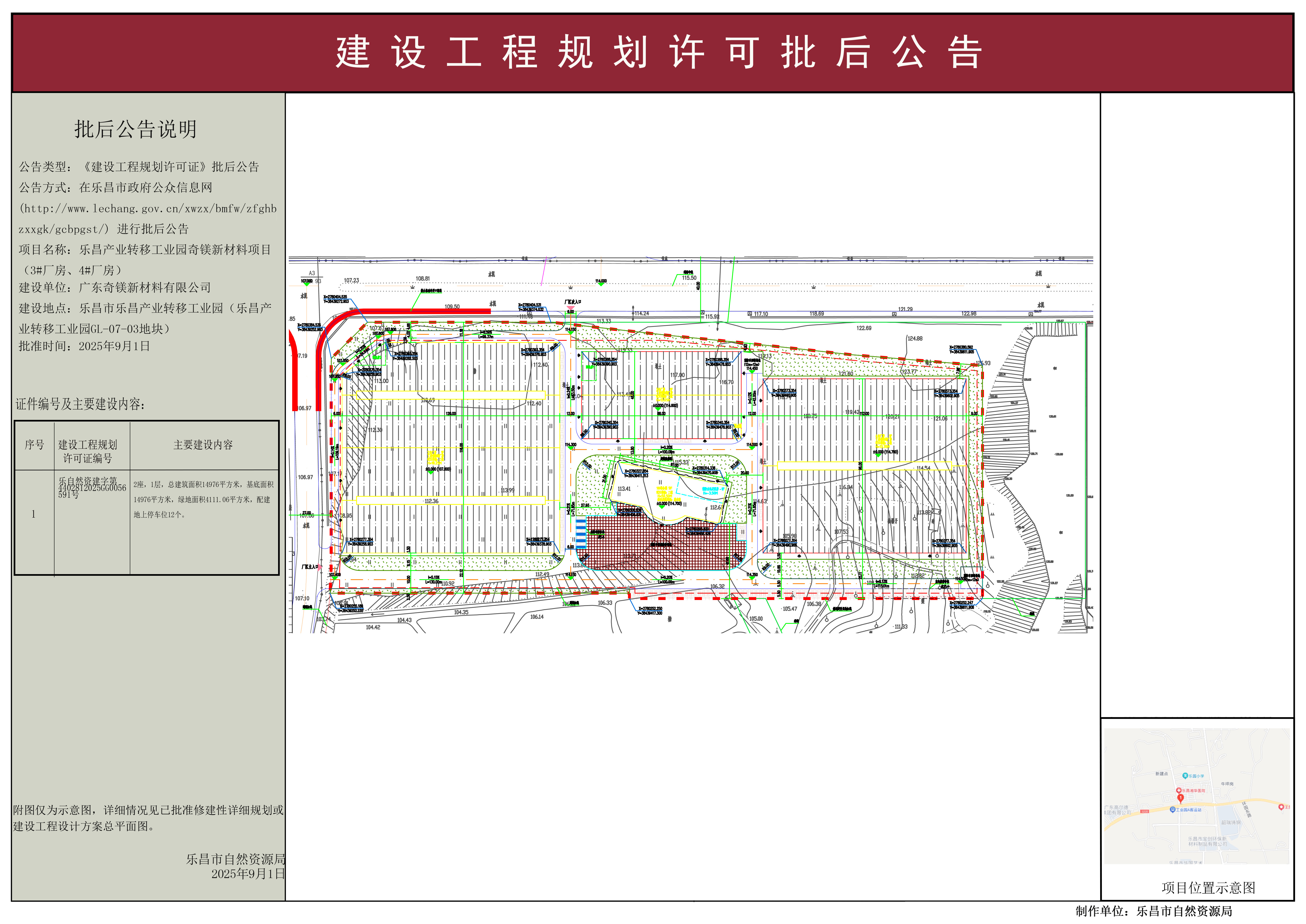 乐昌产业转移工业园奇镁新材料项目(3#厂房、4#厂房)《建设工程规划许可证》批后公告.jpg