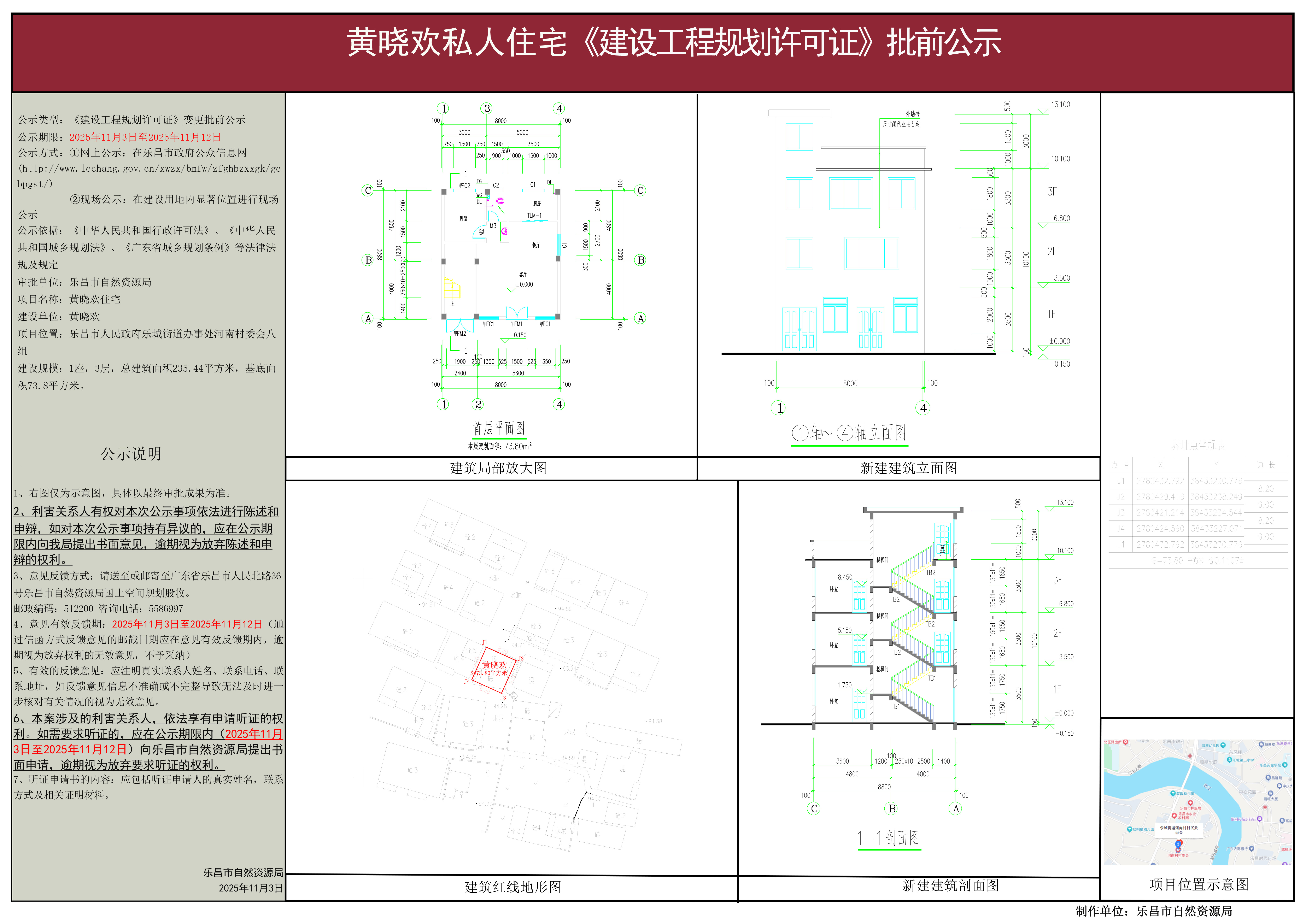 【批前公示】黄晓欢私人住宅《建设工程规划许可证》