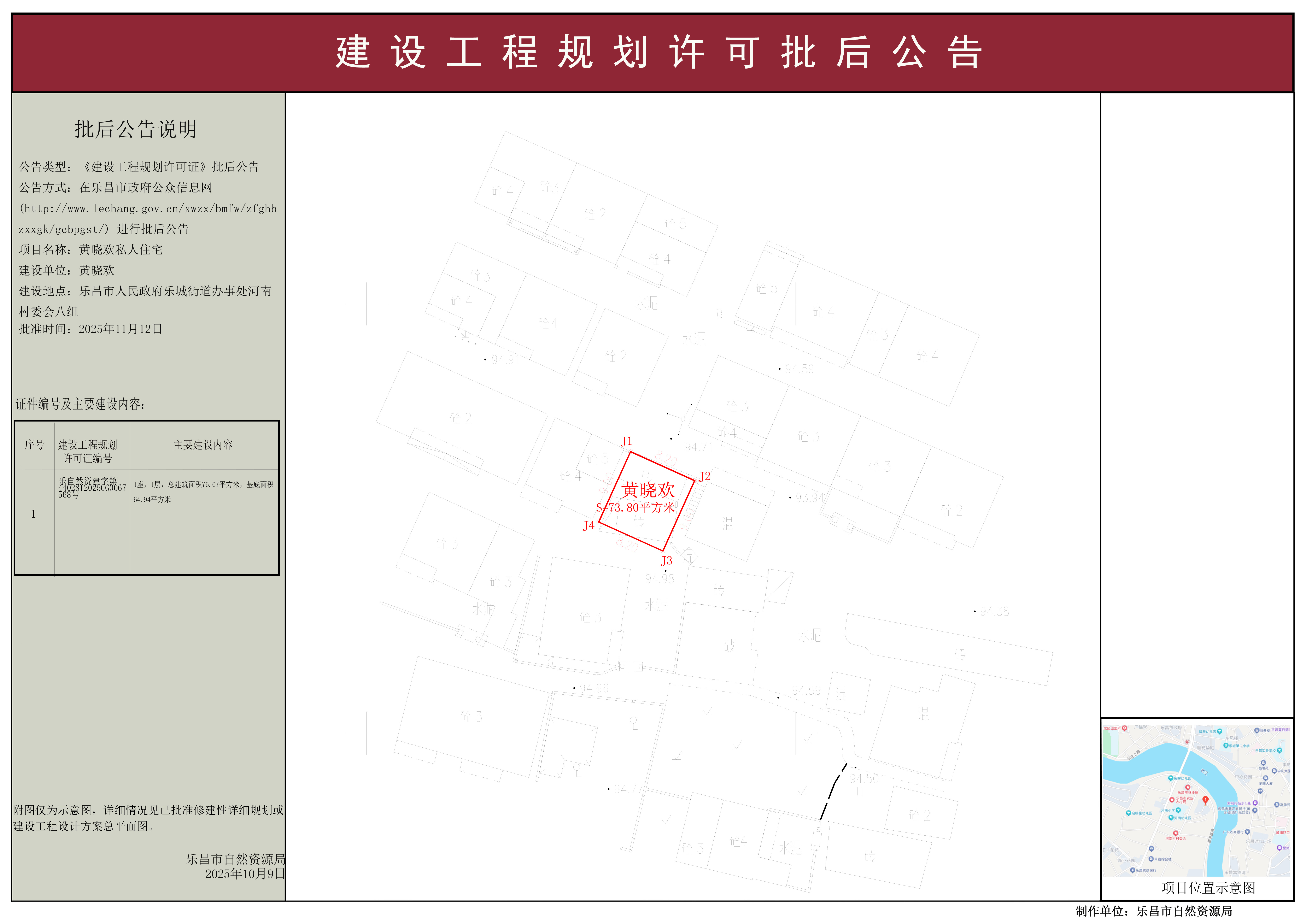 【批后公告】黄晓欢私人住宅《建设工程规划许可证》
