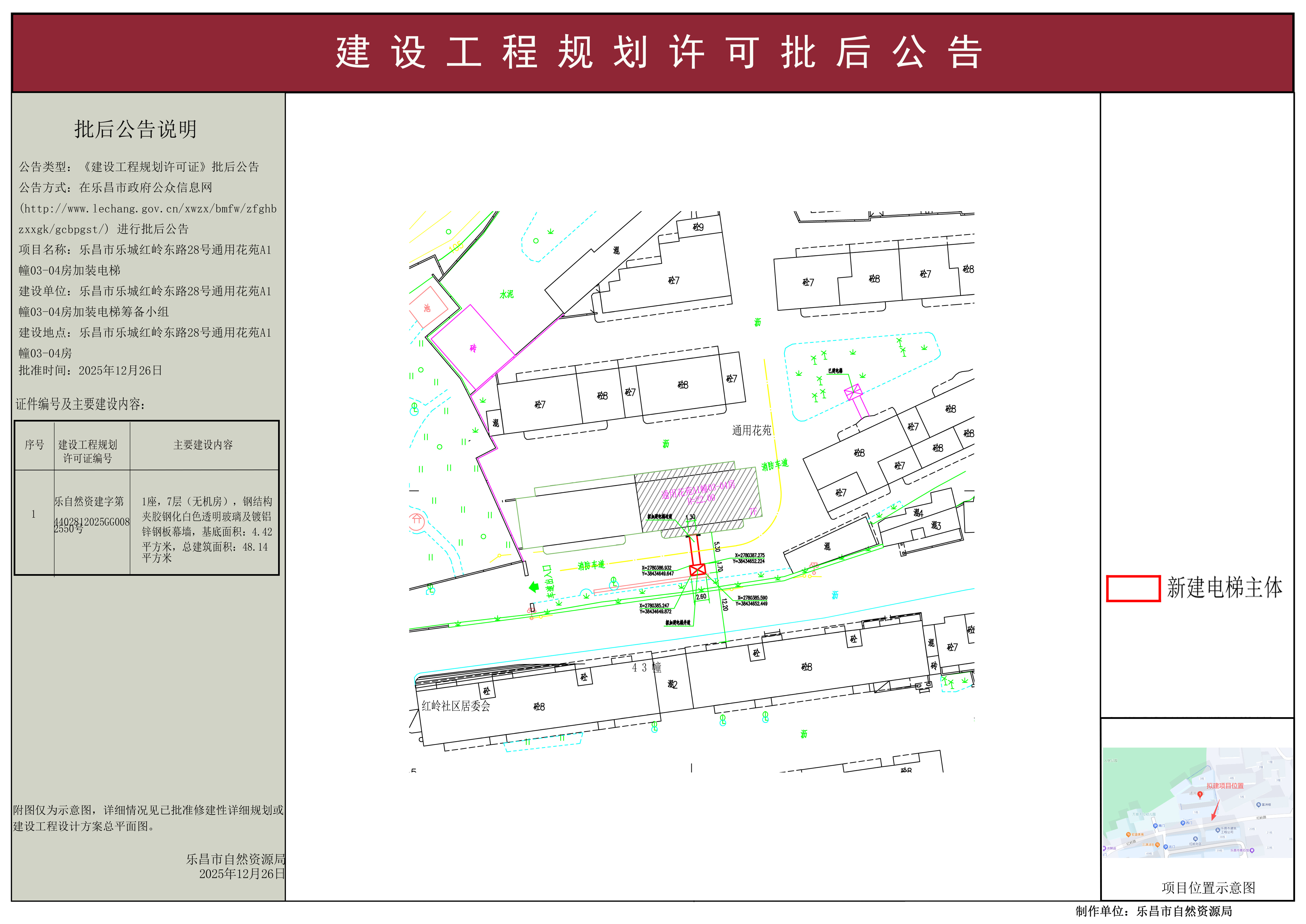 【批后公告】乐昌市乐城红岭东路28号通用花苑A1幢03-04房加装电梯《建设工程规划许可证》