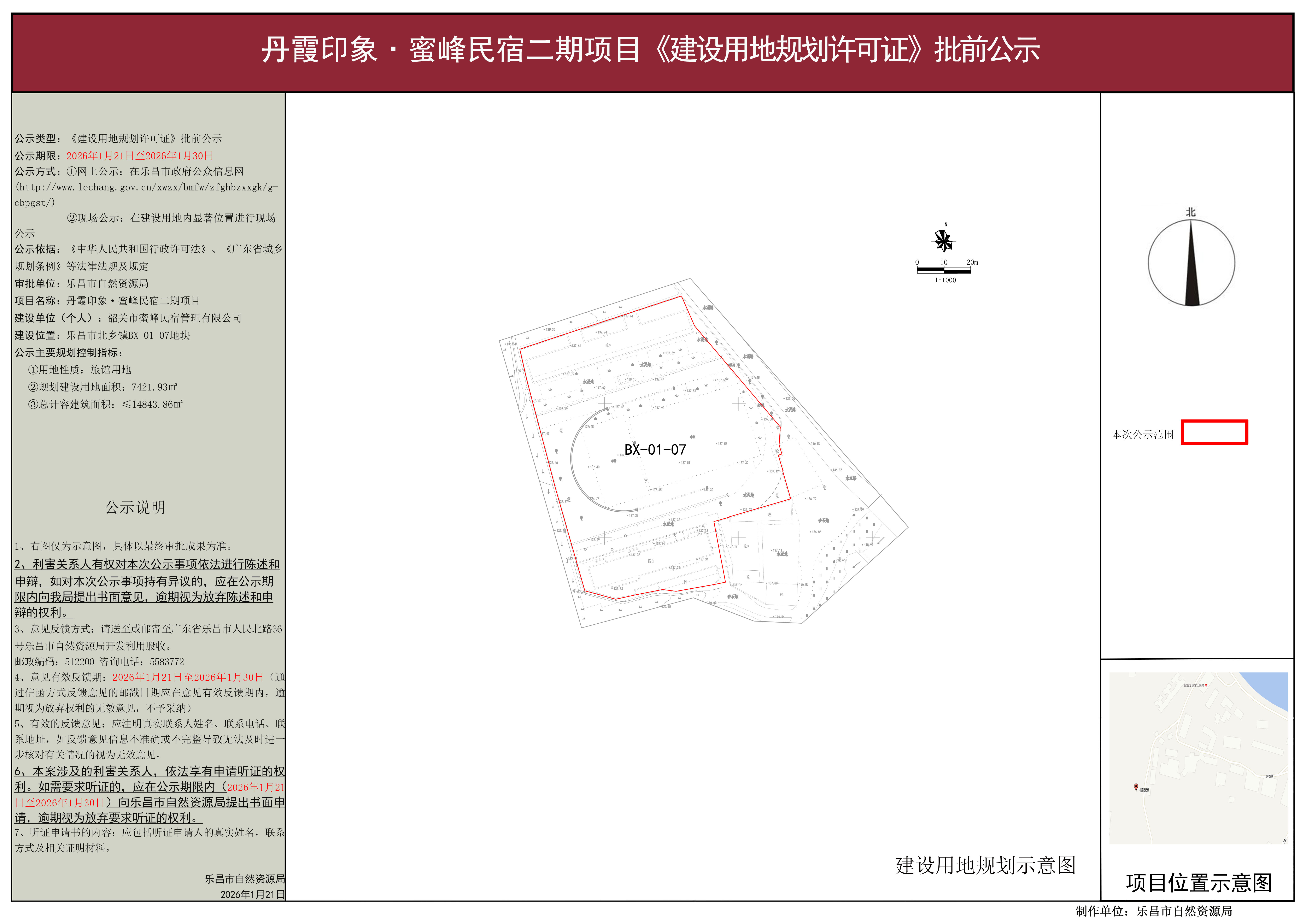 【批前公示】丹霞印象·蜜峰民宿二期项目《建设用地规划许可证》