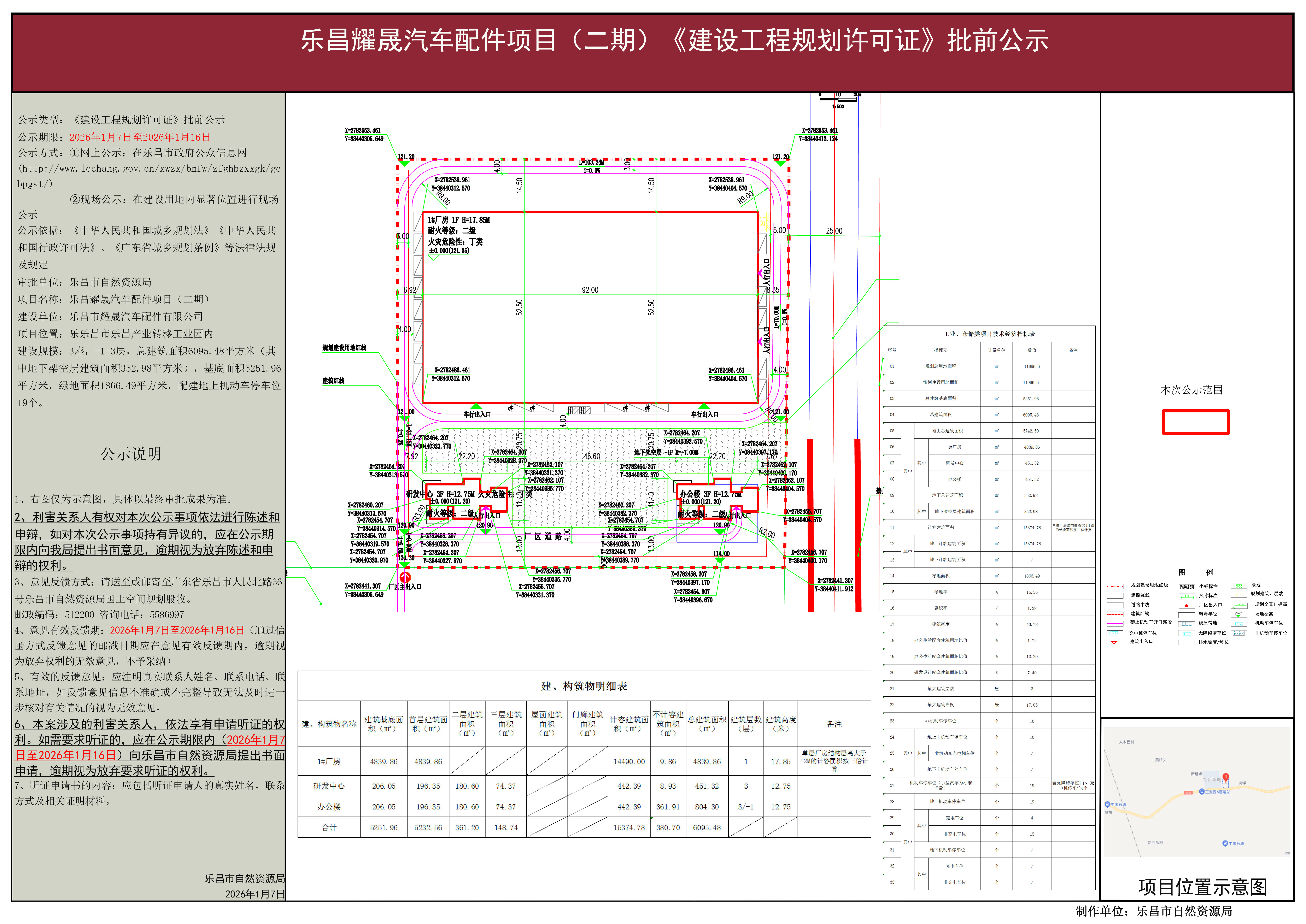 【批前公示】乐昌耀晟汽车配件项目(二期)《建设工程规划许可证》