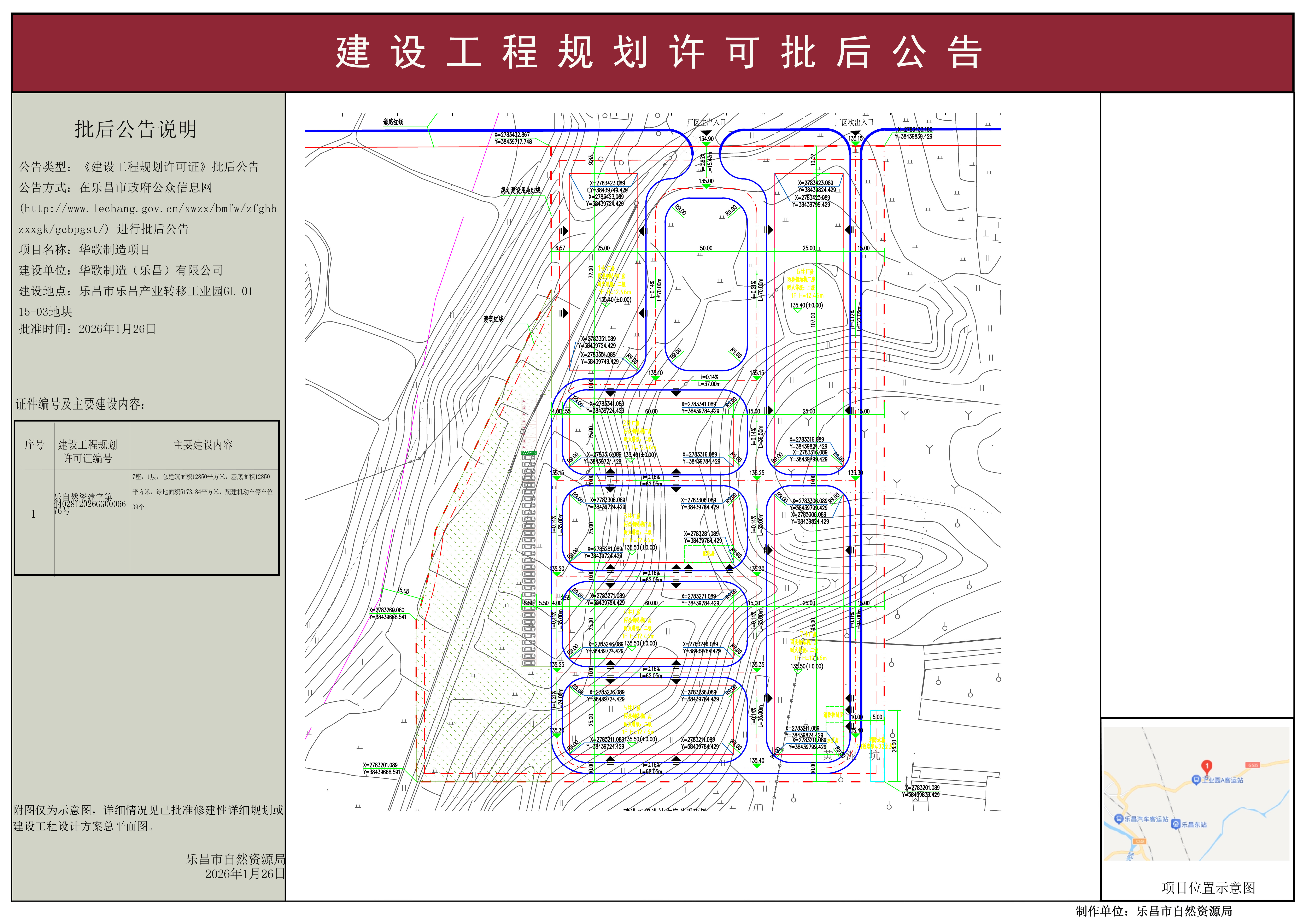 【批后公告】华歌制造项目《建设工程规划许可证》