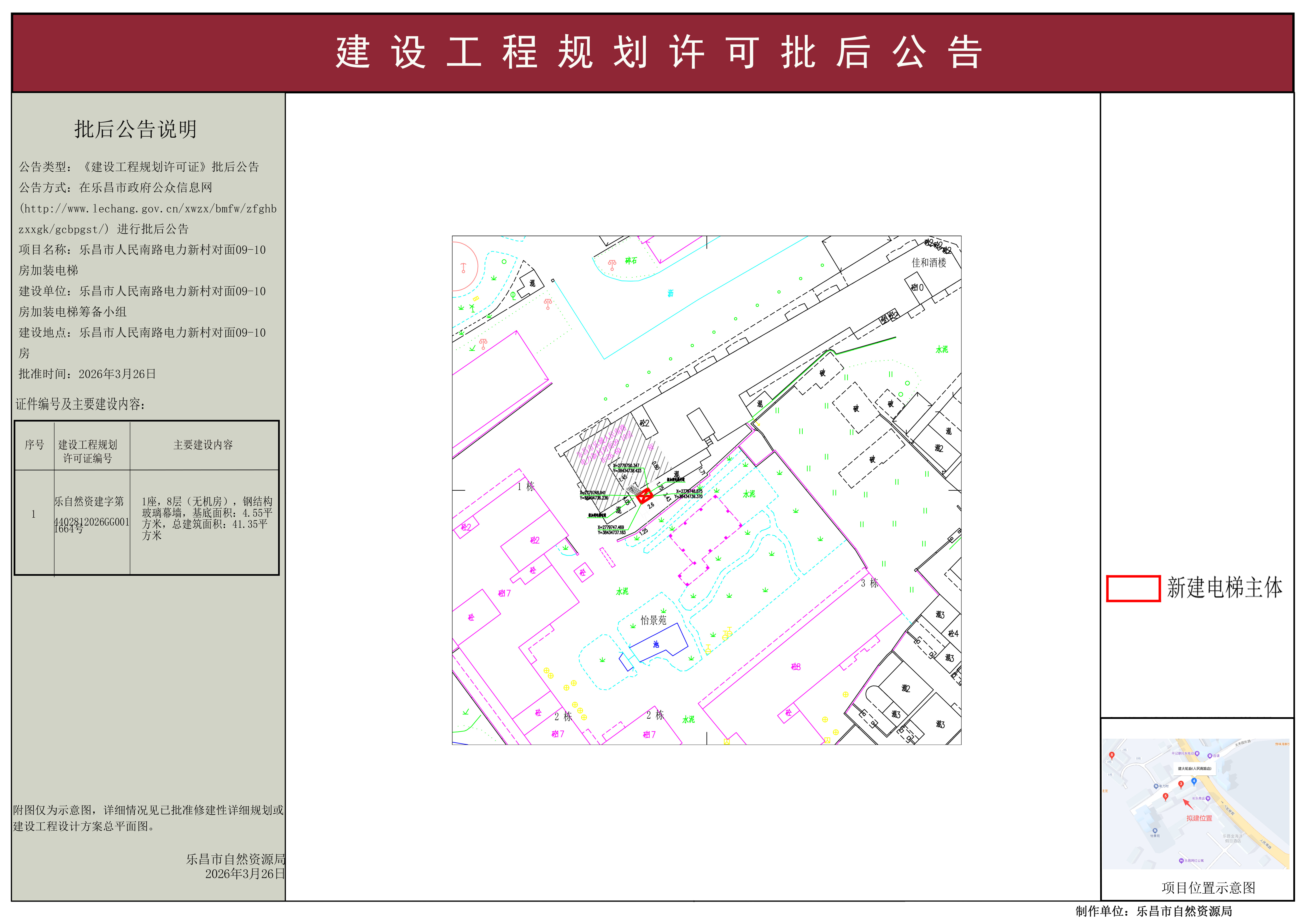 【批后公告】乐昌市人民南路电力新村对面09-10房加装电梯《建设工程规划许可证》