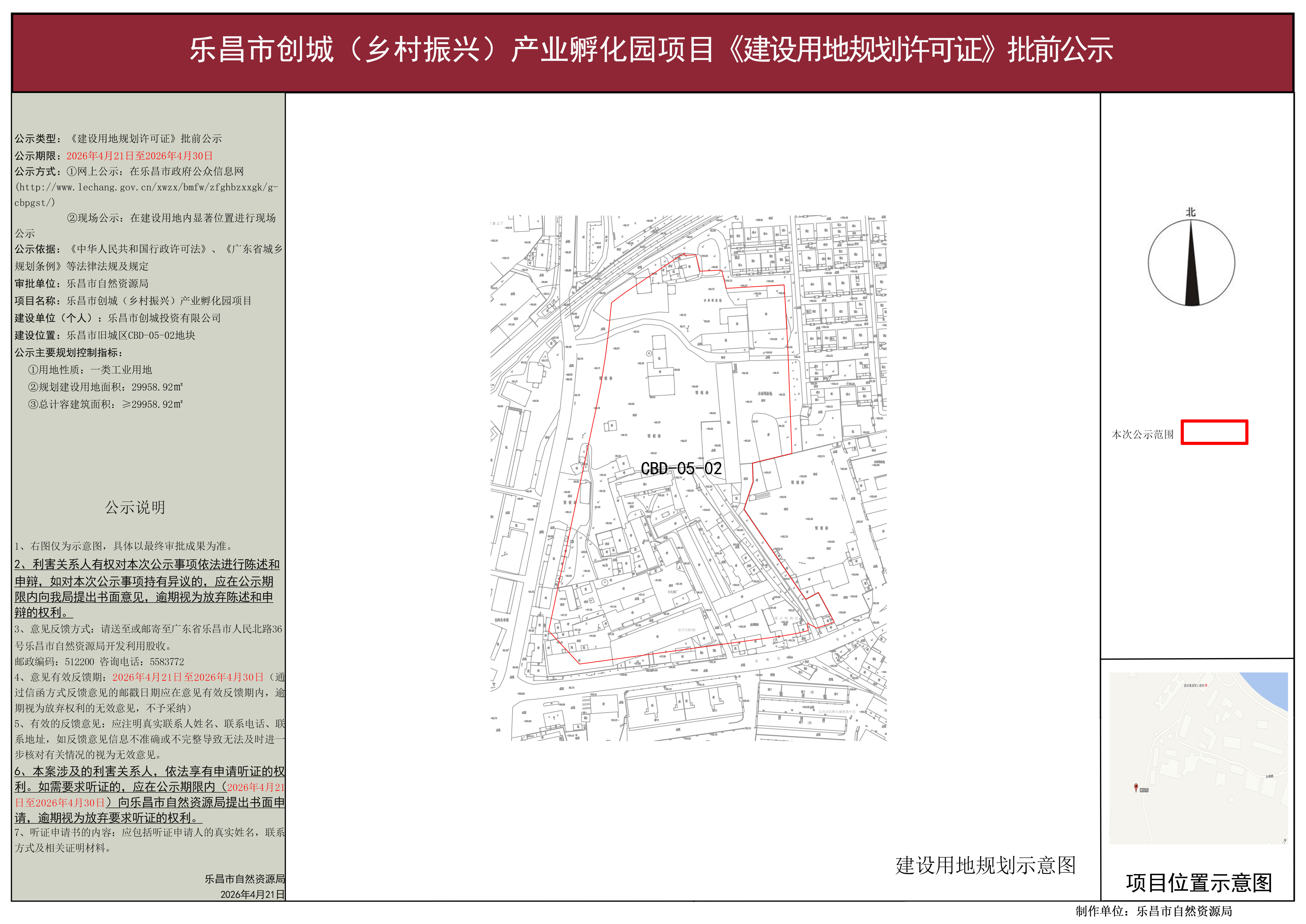 【批前公示】乐昌市创城(乡村振兴)产业孵化园项目《建设用地规划许可证》