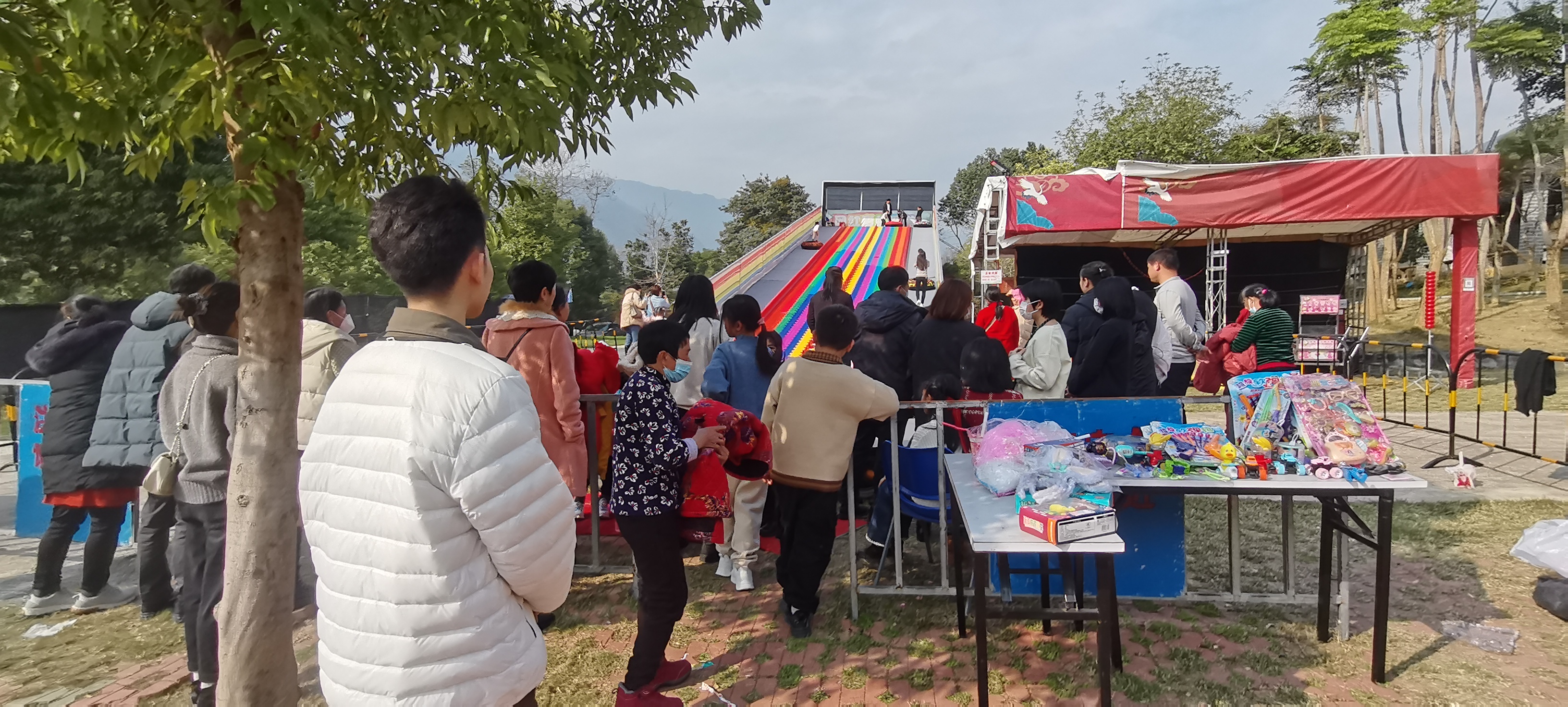 九福兰花公园春节期间推出了网红彩虹滑道等游乐项目