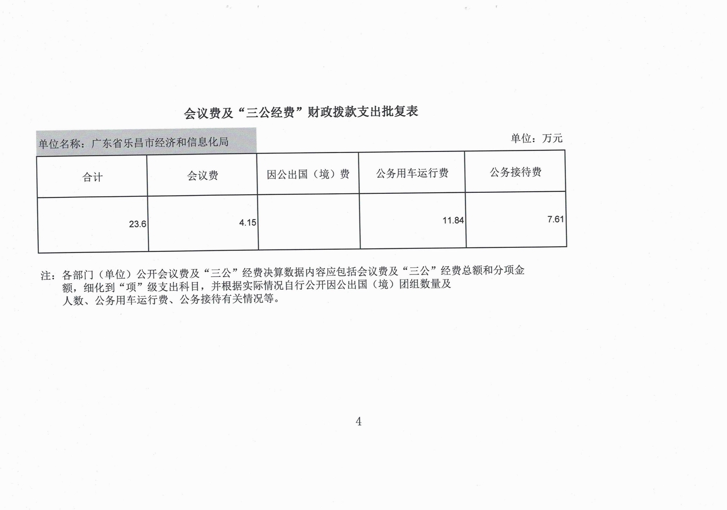 3.公务接待费支出4.15万元,主要用于接待兄弟县市(区)相关部门的业务交流支出。 4.会议费4.15万元。 附: