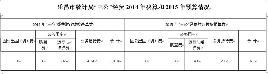 乐昌市统计局“三公”经费2014年决算和2015年预算情况
