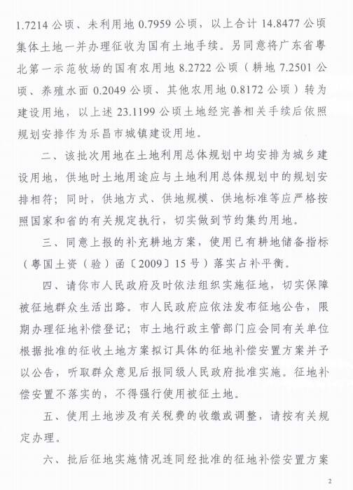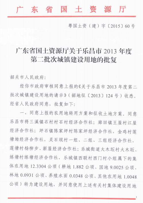 关于乐昌市2013年度第二批次城镇建设用地的批复