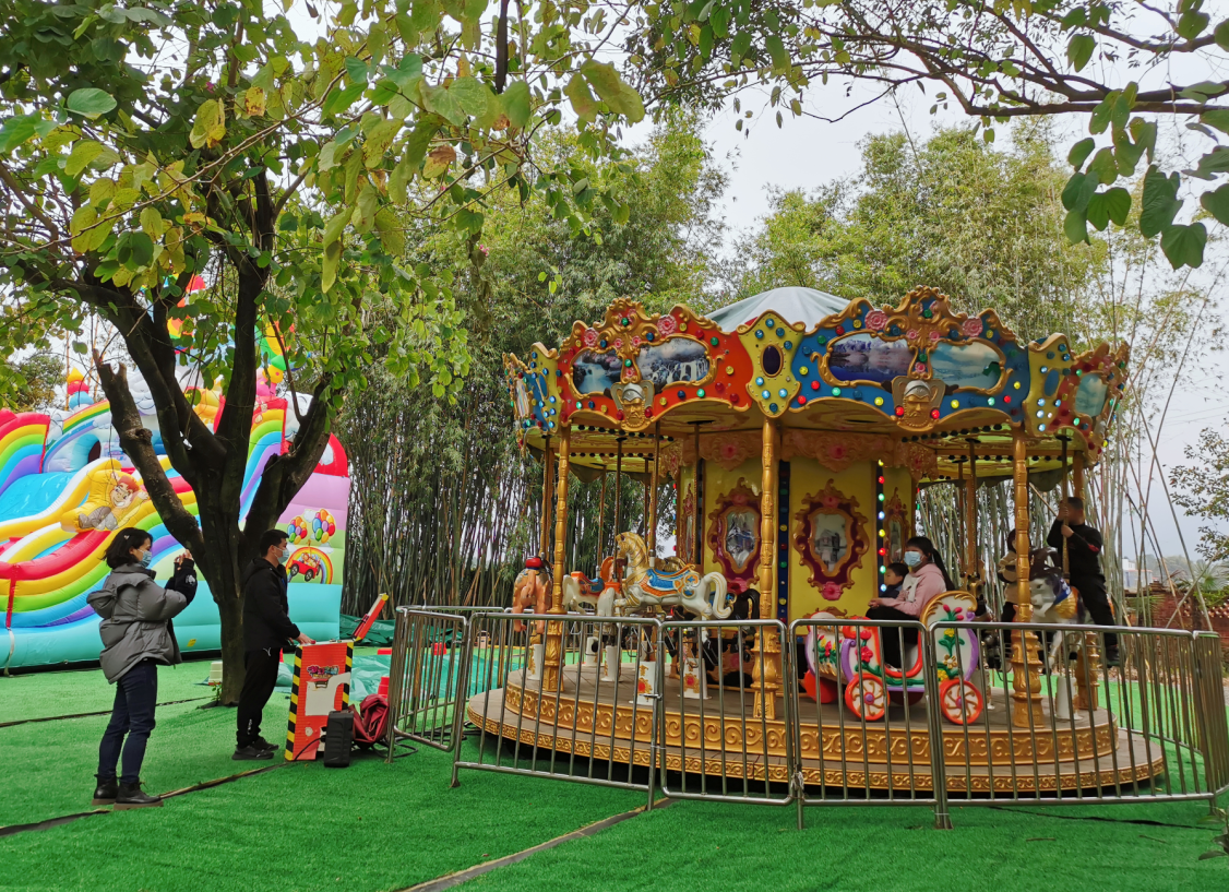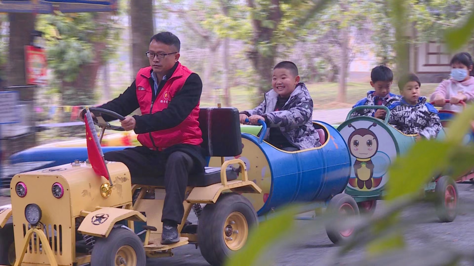 古佛洞天景区工作人员 张红姣:我们增加了很多机动游戏,比如说卡丁车、碰碰车、蹦床、旋转木马,还有我们的亲子农场这边有滑草、网红小火车等项目,让大家欣赏自然景观的同时,又能体验到亲子的欢乐。